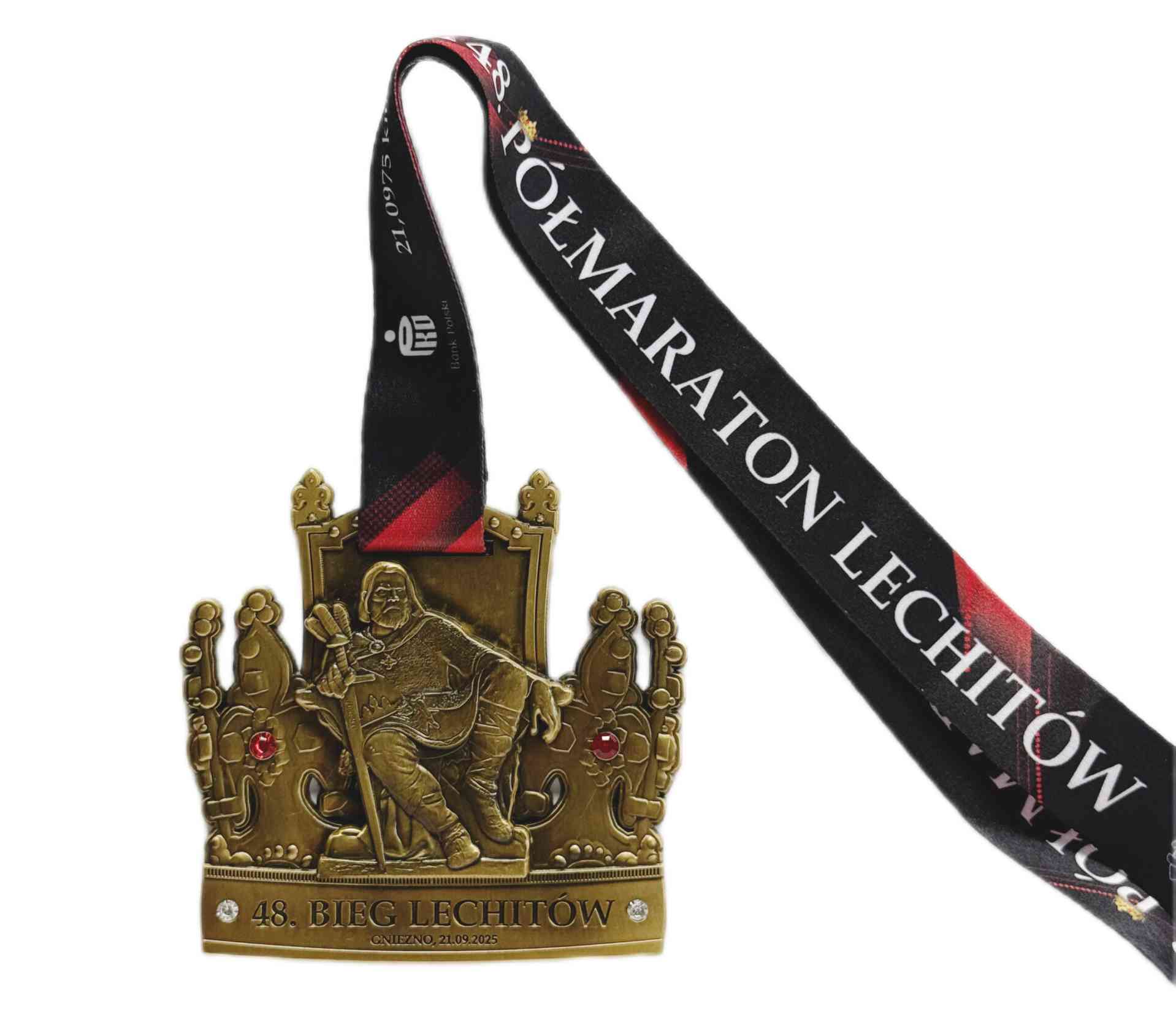 Tegoroczny Bieg Lechitów nawiązuje do tysięcznej rocznicy koronacji księcia Bolesława Chrobrego na pierwszego króla Polski. Z tej okazji wizerunek króla zdobi zarówno koszulkę, którą prezentowaliśmy tutaj, jak i medal. który z pewnością zasługiwał będzie na honorowe miejsce wśród najcenniejszych trofeów każdego biegacza.