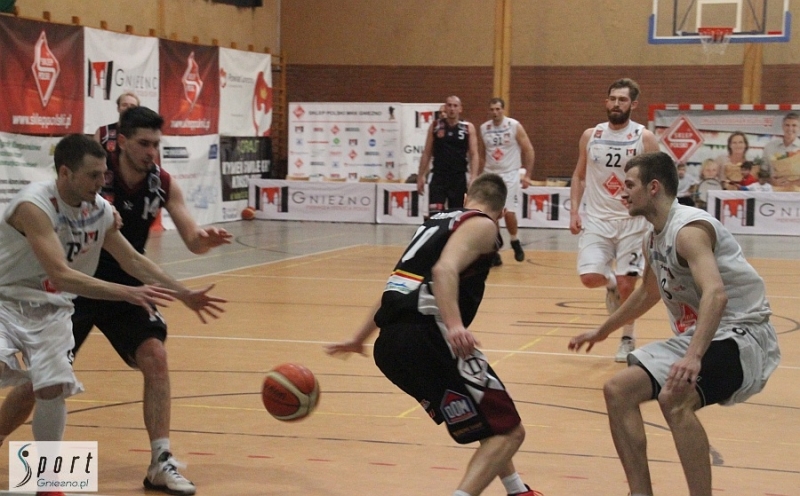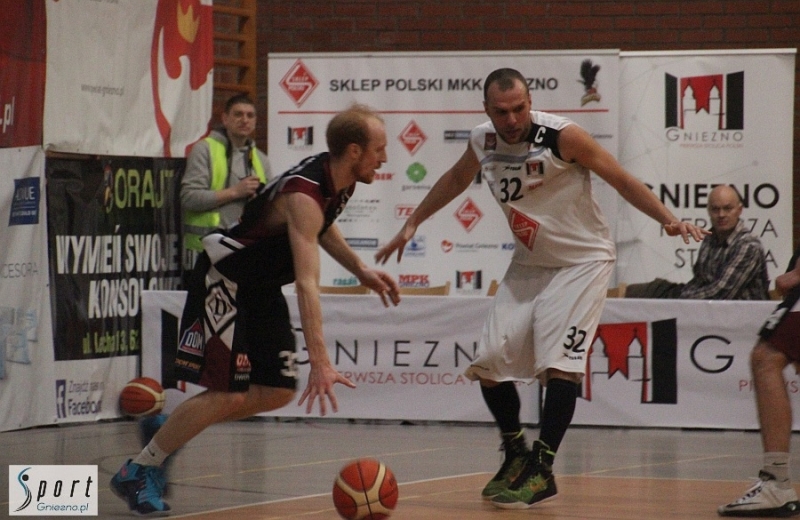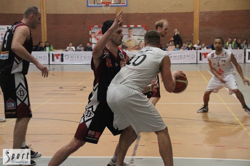 Pierwszy mecz tych zespołów rozegrany w połowie listopada w Inowrocławiu zakończył się zwycięstwem Domina 86:81. Tym razem górą byli gnieźnianie, którzy tylko przez kilka minut pod koniec pierwszej kwarty i na początku drugiej oddali rywalom prowadzenie. Drużynę gospodarzy do walki poderwał na początku spotkania jej kapitan - Dariusz Dobrzycki, zdobywając pierwsze punkty w meczu i po chwili popisując się rzutem zza linii 6,75 m. Po kolejnym rzucie za trzy punkty, tym razem w wykonaniu Michała Kafarskiego, gospodarze prowadzili już 8:3, ale rywale zaczęli odrabiać straty i w 8. minucie spotkania objęli prowadzenie. Minutę później gnieźnianie przegrywali już 11:16, ale ostatecznie pierwsza kwarta zakończyła się ich porażką 13:16. Od początku drugiej podopieczni trenera Arkadiusza Konowalskiego ruszyli do odrabiania strat i robili to skutecznie, bo w ciągu niespełna minuty doprowadzili do remisu po 16. Gospodarze grali z dużą determinacją, a najlepiej świadczyły o tym trzypunktowe akcje (2 + 1 z rzutu wolnego) w wykonaniu Szymona Budnikowskiego i Piotra Golasińskiego. W połowie drugiej kwarty gnieźnianie prowadzili już 29:18, ale z upływem czasu inicjatywę przejęli goście i odrobili znaczną część strat. Na pół minuty przed końcem pierwszej połowy gnieźnianie prowadzili już tylko 34:31, ale ostatecznie druga kwarta zakończyła się rezultatem 36:31. Na początku trzeciej kwarty gnieźnianie wyraźnie zdominowali rywali. Powiększyli prowadzenie aż do 17 punktów (54:37). Z upływem czasu goście odrobili nieco strat i przed ostatnią odsłoną meczu było 62:49. W połowie czwartej kwarty gnieźnianie utrzymywali bezpieczną, piętnastopunktową przewagę prowadząc 71:56 i wydawało się, że raczej nic nie przeszkodzi im w odniesieniu zwycięstwa. Tymczasem w końcówce meczu inicjatywę ponownie przejęli goście. Na trzydzieści sekund przed ostatnią syreną przewaga gnieźnian zmalała do pięciu punktów 79:74. Inowrocławianie próbowali jeszcze walczyć stosując faule taktyczne, ale nie na wiele się to zdało. Gnieźnianie egzekwując rzuty wolne powiększyli jeszcze przewagę zwyciężając ostatecznie 81:74.
