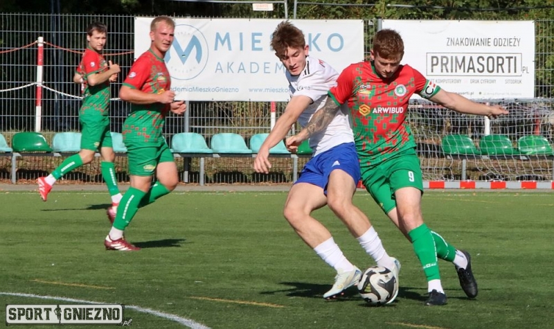 Po dwóch wcześniejszych porażkach drużyny zaplecza pierwszego zespołu Mieszka Gniezno, w niedzielnym spotkaniu zaliczonym do derbów powiatu gnieźnieńskiego. Zdecydowanie lepszym zespołem okazały się rezerwy Mieszka Gniezno, które do niedzielnego meczu z Farą Pelikan Żydowo przystąpiły wzmocnione czteroma piłkarzami z pierwszej drużyny a mianowicie bramkarzem Piotrem Krukiem oraz zawodnikami z pola Oliwerem Olejniczakiem, Tymoteuszem Sawińskim i Stanisławem Piotrowskim. Biało-niebiescy przed niedzielnym meczem zdawali sobie sprawę że potyczka piłkarska z niepisanym faworytem spotkania jakim byli goście z Żydowa zajmujący drugą pozycję w ligowej tabeli nie będzie należała do łatwych. Gnieźnianie potrzebujący pierwszych punktów w sezonie jak przysłowiowego tlenu udowodnili jednak że umieją grać w piłkę a co za tym idzie zdobywać bramki i odprawili swojego rywala z kwitkiem do domu pokonując go zdecydowanie aż 7:1. Mieszkowcy swój festiwal strzelecki rozpoczęli w 24 minucie od zdobytej bramki a co za tym prowadzenia 1:0. Wynik niedzielnego spotkania w szeregach biało-niebieskich otworzył Oliver Zimny. Ten sam zawodnik w 37 minucie wykorzystując dograną piłkę przez Kacpra ,,Siwego” Hoffmanna w polu karnym gości i kończąc całą akcję zdobytą drugą bramką dla zespołu rezerw Mieszka Gniezno, podwyższył prowadzenie swojego zespołu na 2:0. Po tej zdobytej bramce podopieczni Marcina Sporakowskiego, włączyli drugi bieg i do końca pierwszej połowy zaaplikowali swojemu rywalowi kolejne trzy gole. I tak w 43 minucie bramkę na 3:0 dla rezerw Mieszka Gniezno zdobył Mikołaj Poltaszewki, w 45 minucie było już 4:0 dla biało-niebieskich po golu Olivera Zimnego, który tym samym zdobytą swoją trzecią bramką w meczu ustrzelił przysłowiowego hat-tricka. Wynik zaś końcowy pierwszej połowy w 46 minucie ustalił Mikołaj Poltaszewaski, który wykorzystał podyktowany rzut karny na korzyść gospodarzy i rezerwy Mieszka Gniezno na przerwę schodziły prowadząc 5:0. Po zmianie stron podopieczni Marcina Sporakowskiego, którzy kontrolowali przebieg wydarzeń na boisku że sztuczną nawierzchnią trawiastą przy Strumykowej swojemu rywalowi zaaplikowali kolejne dwa gole tracąc zaledwie jednego. W 48 minucie na 6:0 bramkę dla zespołu rezerw Mieszka Gniezno zdobył Michał Wachowski a minutę później gola podwyższającego prowadzenie biało-niebieskich na 7:0 strzelił Tymoteusz Sawiński. Goście na stracone siedem bramek odpowiedzieli zaledwie celnym trafieniem do bramki gnieźnieńskiej. Gola zmniejszającego prowadzenie rezerw Mieszka Gniezno na 7:1 a co za tym idzie ustalającym wynik końcowy niedzielnego spotkania Mieszaka II Gniezno z Farą Pelikan Żydowo zdobył z podyktowanego rzutu karnego w ekipie gości Dawid Karbowiak. Tym zwycięstwem zespół Mieszka II Gniezno, zainkasował na swoim koncie pierwsze punkty w nowym sezonie co jest dobrym prognostykiem na dalszą cześć rozgrywek aklasowych.